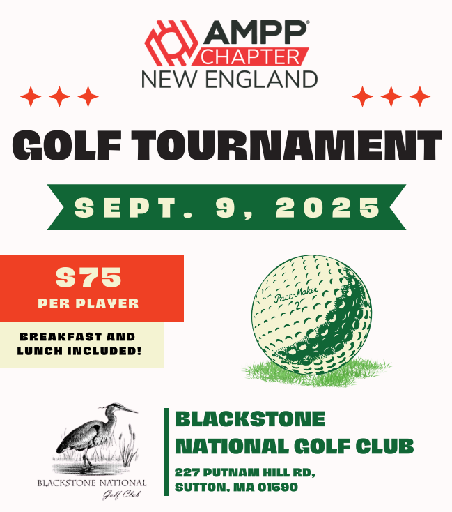Join us on Tuesday, September 9th at Blackstone National Golf Club for the AMPP New England Chapter Golf Tournament!